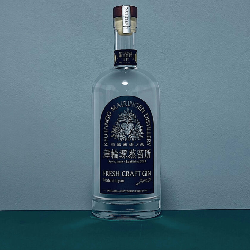 京都にある京丹後舞輪源蒸留所で造られるジン。ジンの伝統的なスパイスに加え、蒸留当日に採取するクロモジや熱した石で急速焙煎した熊笹など、14種類のボタニカルを使用し、山の高地から湧き出る「超軟水」と山の麓から得られる「超硬水」をブレンドして仕上げられる。素材本来の風味を生かしながら、豊かな丹後の森を想わせる、芳醇かつ爽やかな味わい。